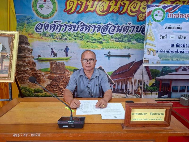 24 มีนาคม 2569 เวลา 09.00 น. นางวิลาสินี สามารถ ประธานสภาองค์การบริหารส่วนตำบลท่าค้อ เรียกประชุมสภาองค์การบริหารส่วนตำบลท่าค้อ สมัยสามัญ สมัยที่ 1/2569 (ครั้งที่ 2) ประจำปี 2569 เพื่อพิจารณารับโอนโครงการแก้มลิงหนองฝั่งแดง พร้อมอาคารประกอบบ้านดอนม่วง จากโครงการก่อสร้าง สำนักงานชลประทานที่ 7 โดยมีคณะผู้บริหาร สมาชิกสภาองค์การบริหารส่วนตำบล หัวหน้าส่วนราชการ พร้อมพนักงานส่วนตำบล เข้าร่วมรับฟัง ณ ห้องประชุมสภาองค์การบริหารส่วนตำบลท่าค้อ
