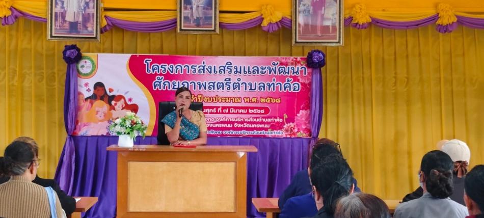 วันที่ 7 มีนาคม 2568 เวลา 18.30 น. คุณพิชญา โพชราษฎร นายก อบต.ท่าค้อ เป็นประธานเปิดโครงการส่งเสริมและพัฒนาศักยภาพสตรีตำบลท่าค้อ ประจำปีงบประมาณ พ.ศ.2568 ณ ห้องประชุมอาคารศรีบังกอ องค์การบริหารส่วนตำบลท่าค้อ... [7 มีนาคม 2568]
