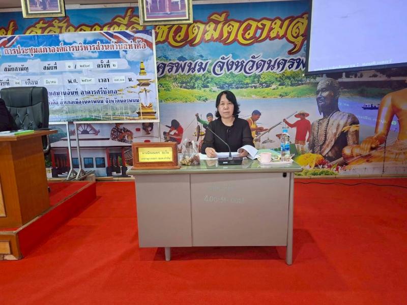 24 มีนาคม 2569 เวลา 09.00 น. นางวิลาสินี สามารถ ประธานสภาองค์การบริหารส่วนตำบลท่าค้อ เรียกประชุมสภาองค์การบริหารส่วนตำบลท่าค้อ สมัยสามัญ สมัยที่ 1/2569 (ครั้งที่ 2) ประจำปี 2569 เพื่อพิจารณารับโอนโครงการแก้มลิงหนองฝั่งแดง พร้อมอาคารประกอบบ้านดอนม่วง จากโครงการก่อสร้าง สำนักงานชลประทานที่ 7 โดยมีคณะผู้บริหาร สมาชิกสภาองค์การบริหารส่วนตำบล หัวหน้าส่วนราชการ พร้อมพนักงานส่วนตำบล เข้าร่วมรับฟัง ณ ห้องประชุมสภาองค์การบริหารส่วนตำบลท่าค้อ