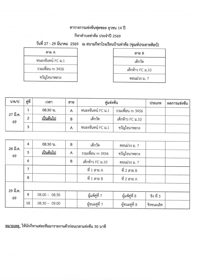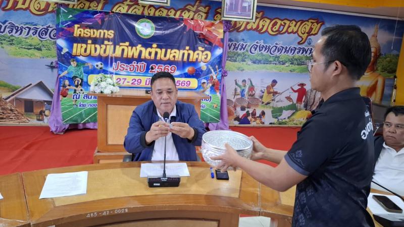 เมื่อวันที่ 23 มีนาคม 2569 เวลา 13.30 น. ณ ห้องประชุมสมานฉันท์ อาคารศรีบังกอ นายวิทนะ กรุงเกตุ นายก อบต.ท่าค้อ เป็นประธานในการประชุมและร่วมจับสลากแบ่งสายการแข่งขันกีฬาระดับตำบลประจำปี 2569