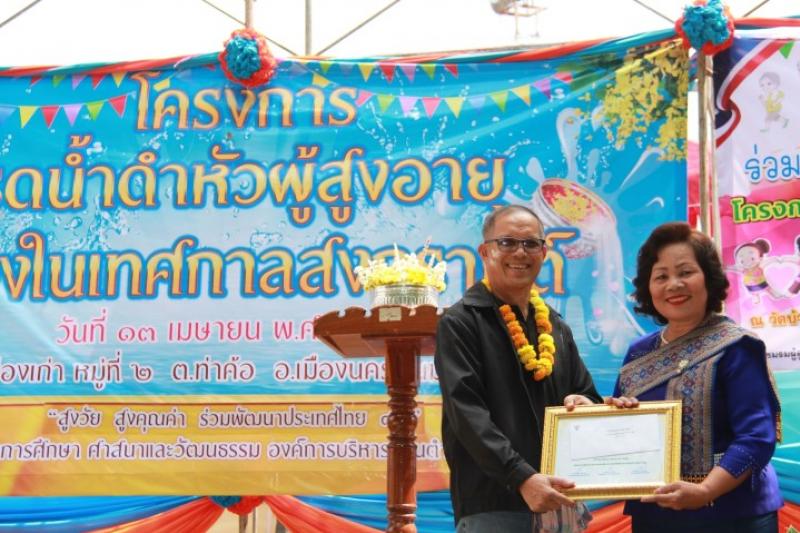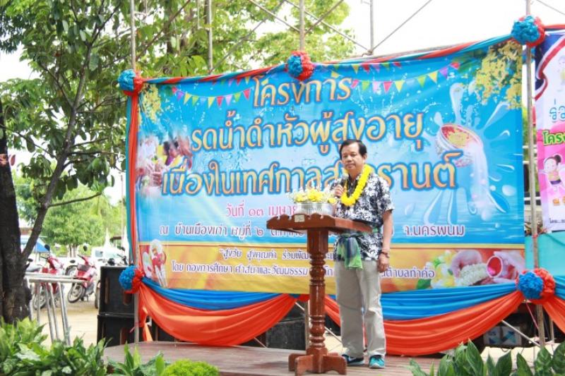 รายละเอียด : องค์การบริหารส่วนตำบลท่าค้อ โดย กองการศึกษา ศาสนาและวัฒนธรรม ได้จัดกิจกรรมตามโครงการงานรดน้ำดำหัวผู้สูงอายุเนื่องในเทศกาลสงกรานต์ ประจำปี พ.ศ.2560 ในวันที่ 13 เมษายน 2560 ณ บริเวณวัดบ้านเมืองเก่า หมู่ที่ 2 ตำบลท่าค้อ เพื่อเป็นการส่งเสริมให้คนทุกวัยแสดงความกตัญญูกตเวทีต่อผู้สูงอายุ สร้างขวัญ กำลังใจให้ผู้สูงอายุได้มีความสุขใจ และเพื่อเป็นการอนุรักษ์ สืบสานประเพณีวัตนธรรมที่ดีงามให้คงอยู่คู่สังคมไทย ต่อไป โดยมีนายชวลิต วิทยสุทธิ์ อดีต สส.นครพนม เป็นประธานในพิธี และมีนายสฤษดิ์ บัวลง นายก อบต.ท่าค้อ หัวหน้าส่วนราชการข้าราชการ พนักงาน ผู้นำชุมชน และประชาชนเข้าร่วมกิจกรรมเป็นจำนวนมาก