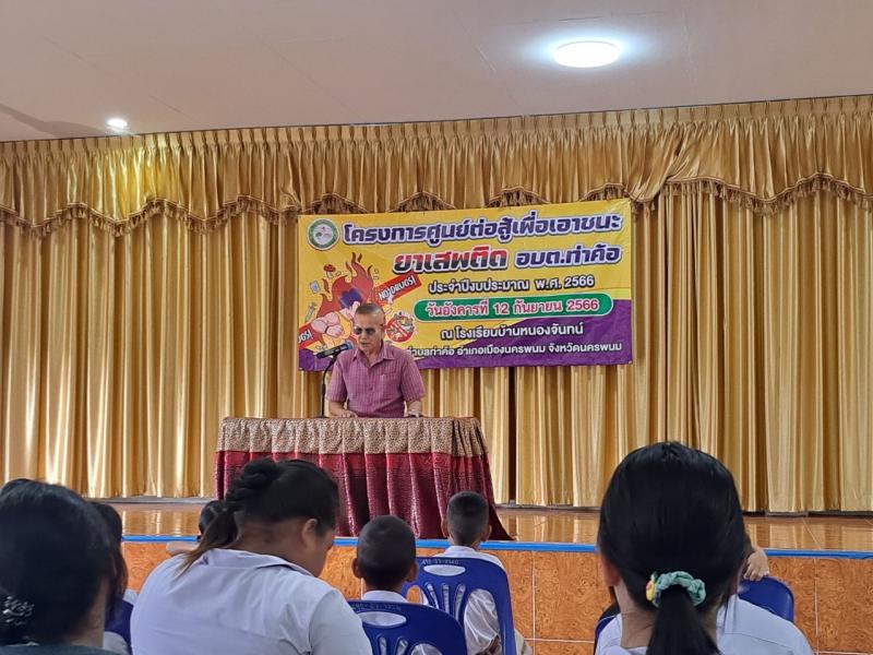 12 กันยายน 2566 เวลา 09.00 น. นายคำนึง ลับจันทร์ รองนายก อบต.ท่าค้อ ได้รับมอบหมายจากท่าน พิชญา โพชราษฎร นายก อบต.ท่าค้อ เป็นประธานในพิธีเปิดโครงการศูนย์ต่อสู้เพื่อเอาชนะยาเสพติด อบต.ท่าค้อ ประจำปีงบประมาณ พ.ศ. 2566 ณ โรงเรียนบ้านหนองจันทร์ ตำบลท่าค้อ อำเภอเมือง จังหวัดนครพนม