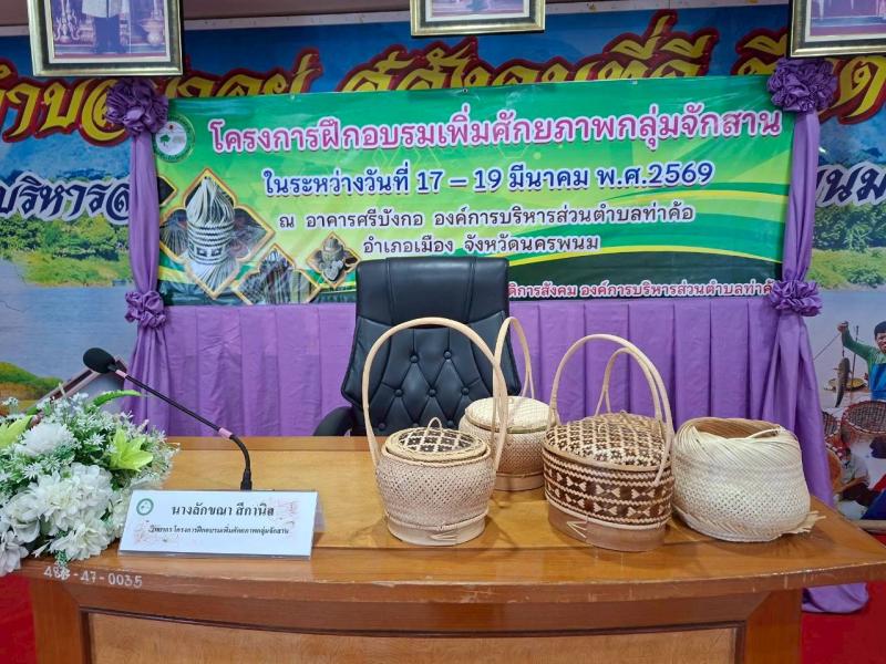 วันที่ 17 มีนาคม 2569 เวลา 09.00 น. นายวิทนะ กรุงเกตุ นายกอบต.ท่าค้อ เป็นประธานในพิธีเปิดโครงการฝึกอบรมเพิ่มศักยภาพกลุ่มจักสาน ประจำปีงบประมาณ พ.ศ.2569 โดยมี คณะผู้บริหาร และนางวิลาสินี สามารถ ประธานสภา อบต.ท่าค้อ หัวหน้าส่วนราชการ เข้าร่วมโครงการอย่างพร้อมเพรียง การฝึกอบรมเพิ่มศักยภาพกลุ่มจักสาน จัดขึ้นระว่างวันที่: 17 – 19 มีนาคม พ.ศ. 2569 ???? สถานที่: ณ อาคารศรีบังกอ องค์การบริหารส่วนตำบลท่าค้อ อ.เมือง จ.นครพนม โดยได้รับเกียรติจากวิทยากรผู้เชี่ยวชาญ คุณลักขณา สีกานิล มาถ่ายทอดองค์ความรู้และเทคนิคการจักสานแบบเจาะลึก เพื่อให้กลุ่มแม่บ้านและชาวบ้านในพื้นที่ได้นำไปต่อยอด สร้างงาน สร้างอาชีพ และสร้างรายได้ที่ยั่งยืนให้กับครอบครัว