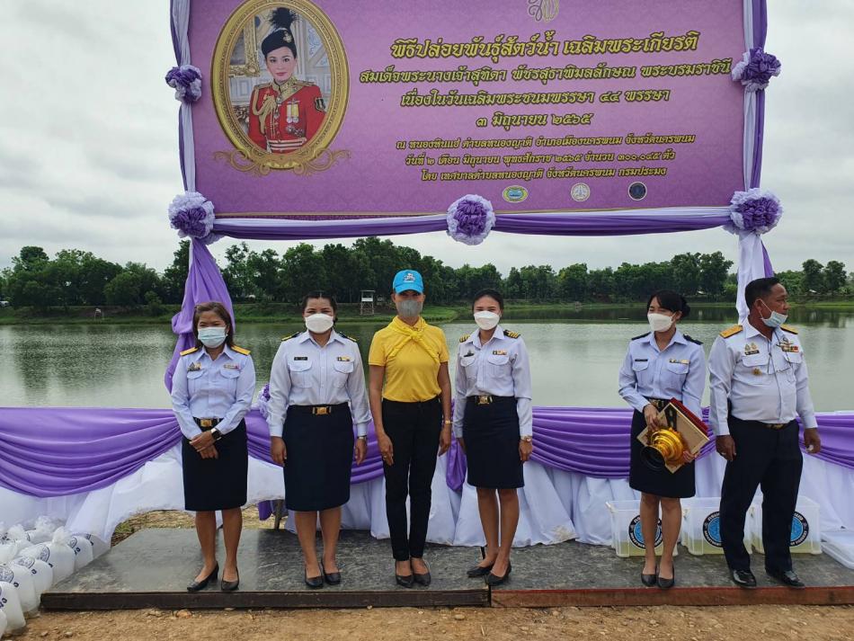 พิธีปล่อยพันธุ์สัตว์น้ำ เฉลิมพระเกียรติสมเด็จพระนางเจ้าสุทิดา พัชรสุธาพิมลลักษณ พระบรมราชินี เนื่องในวันเฉลิมพระชนมพรรษา 44 พรรษา 3 มิถุนายน 2565 [2 มิถุนายน 2565]
