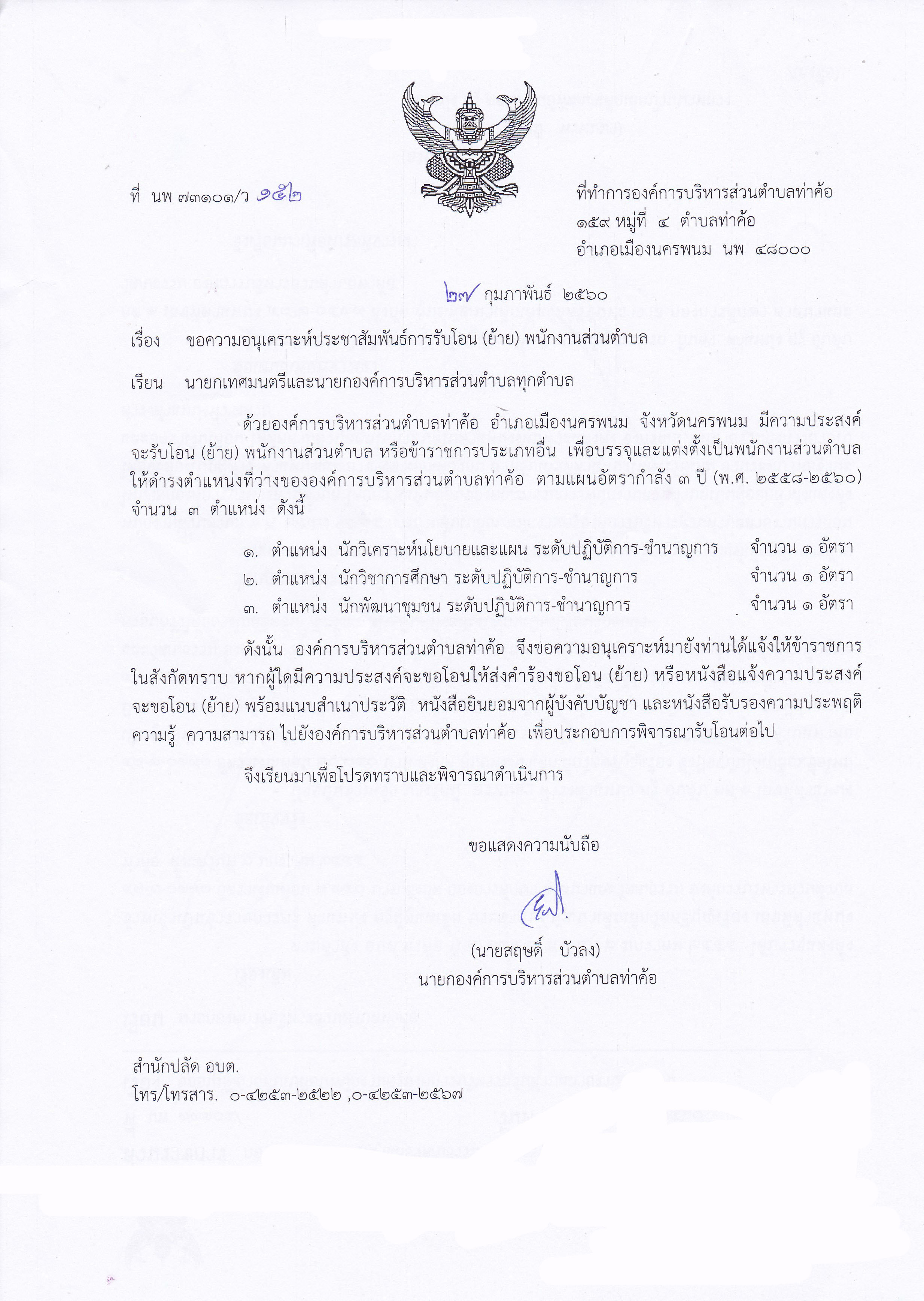 ประชาสัมพันธ์การรับโอน(ย้าย)พนักงานส่วนตำบล