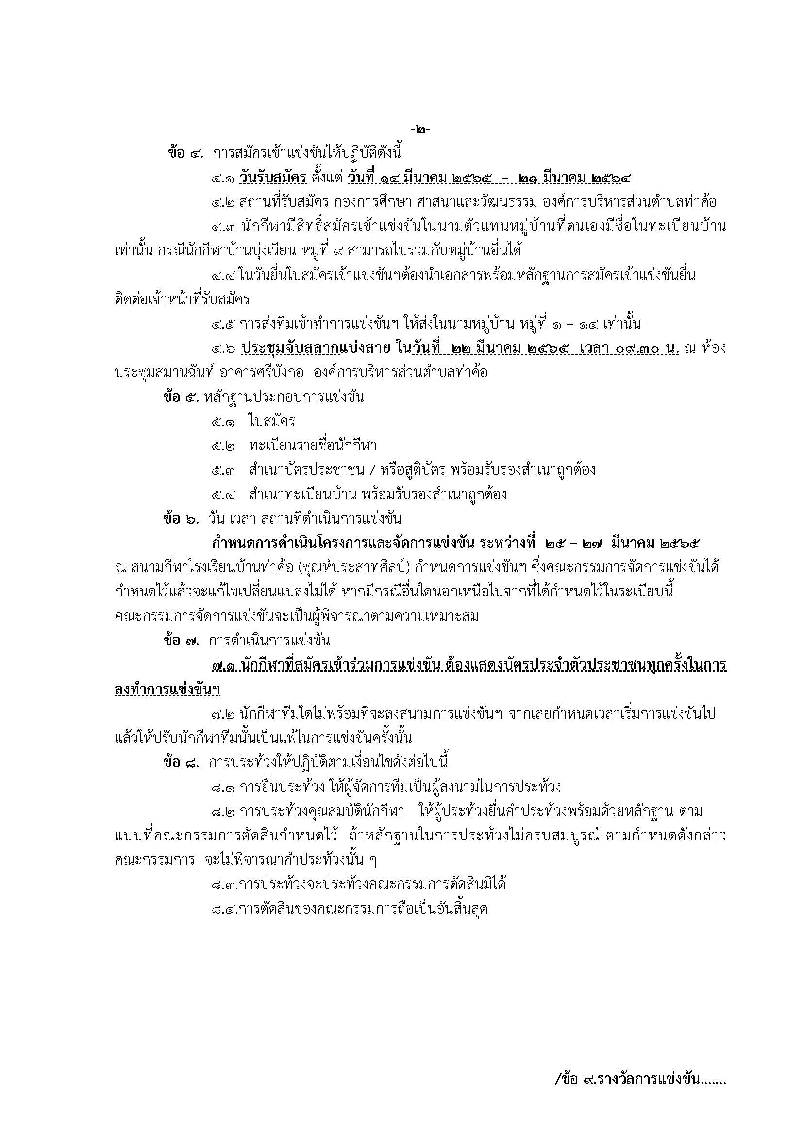 ประกาศองค์การบริหารส่วนตำบลท่าค้อ เรื่อง การแข่งขันกีฬาต้านยาเสพติดตำบลท่าค้อ ประจำปี พ.ศ.2565