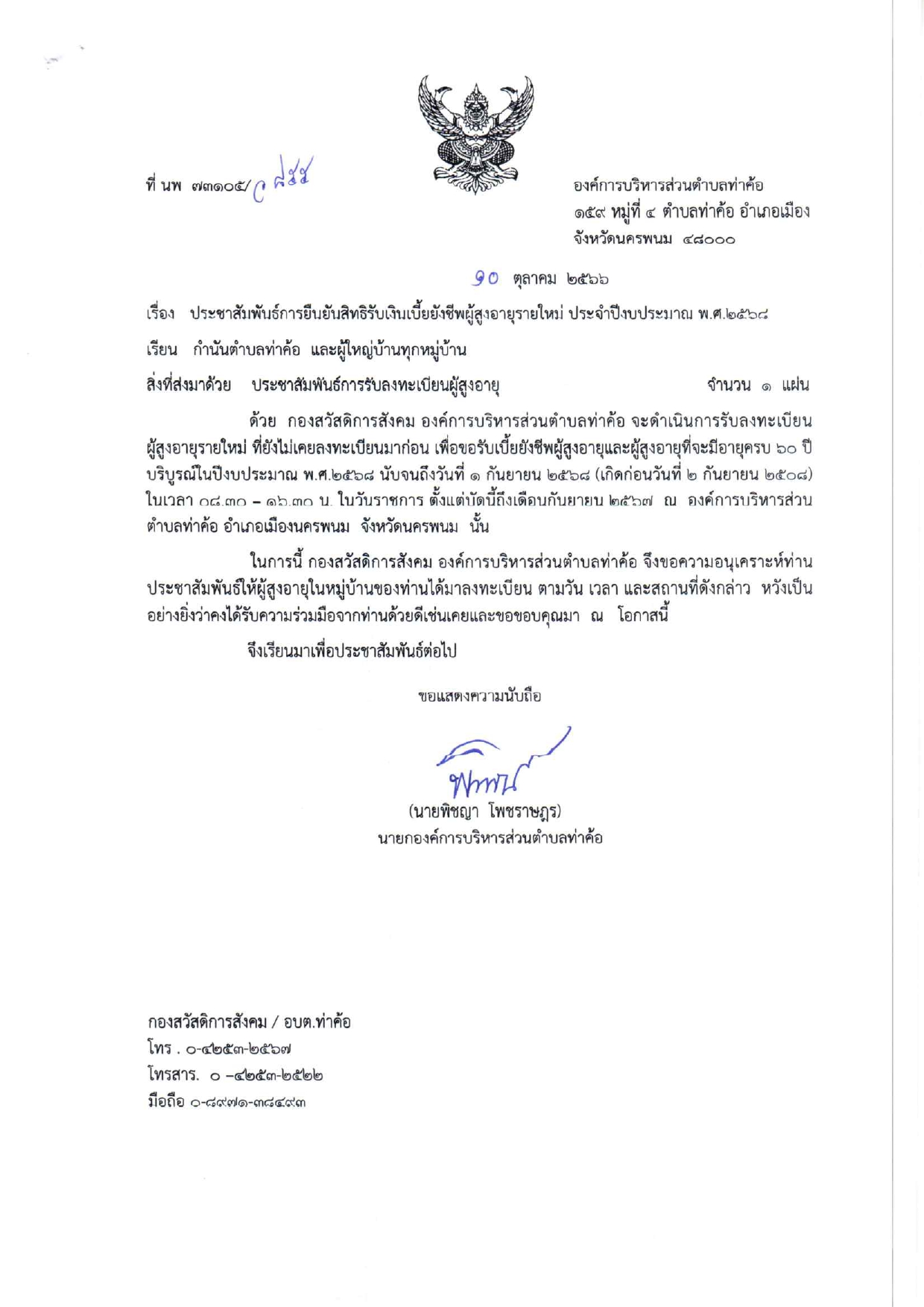 ประชาสัมพันธ์การยืนยันสิทธิรับเงินเบี้ยยังชีพผู้สูงอายุรายใหม่ ประจำปีงบประมาณ พ.ศ.2568