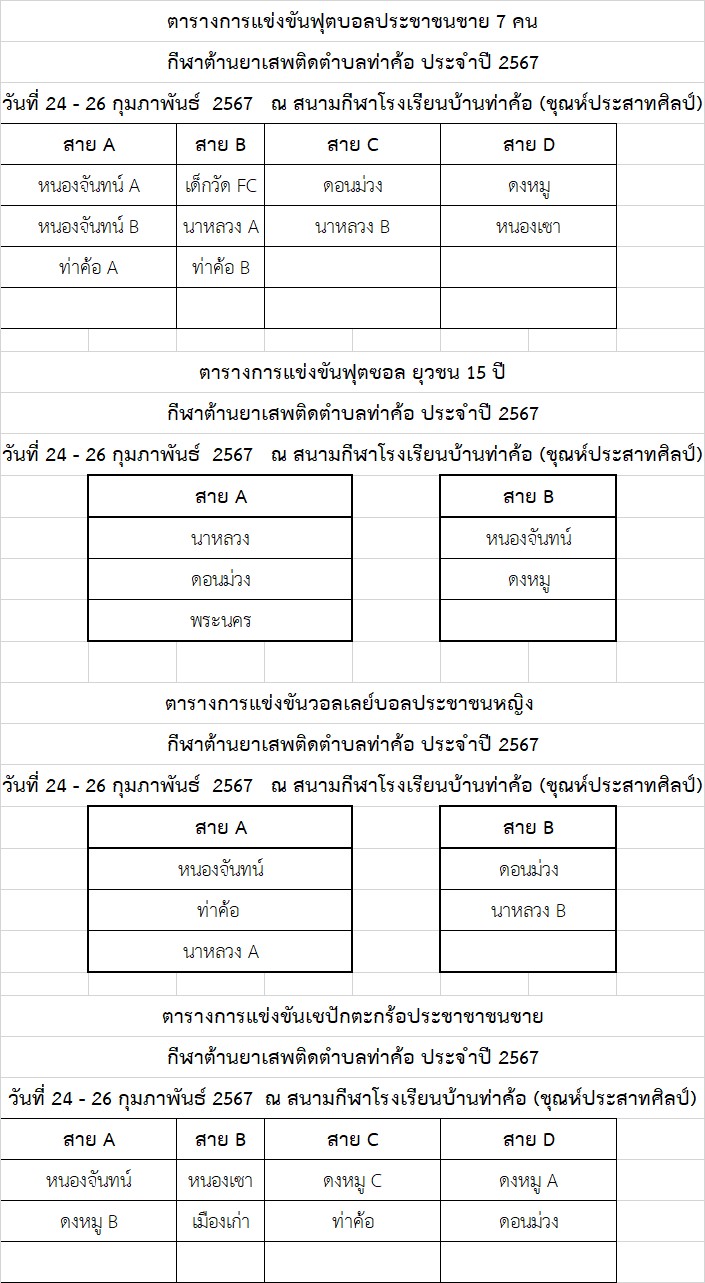 ผลการจัลสลากแบ่งสาย กีฬาตำบลท่าค้อ ประจำปีงบประมาณ พ.ศ. 2567