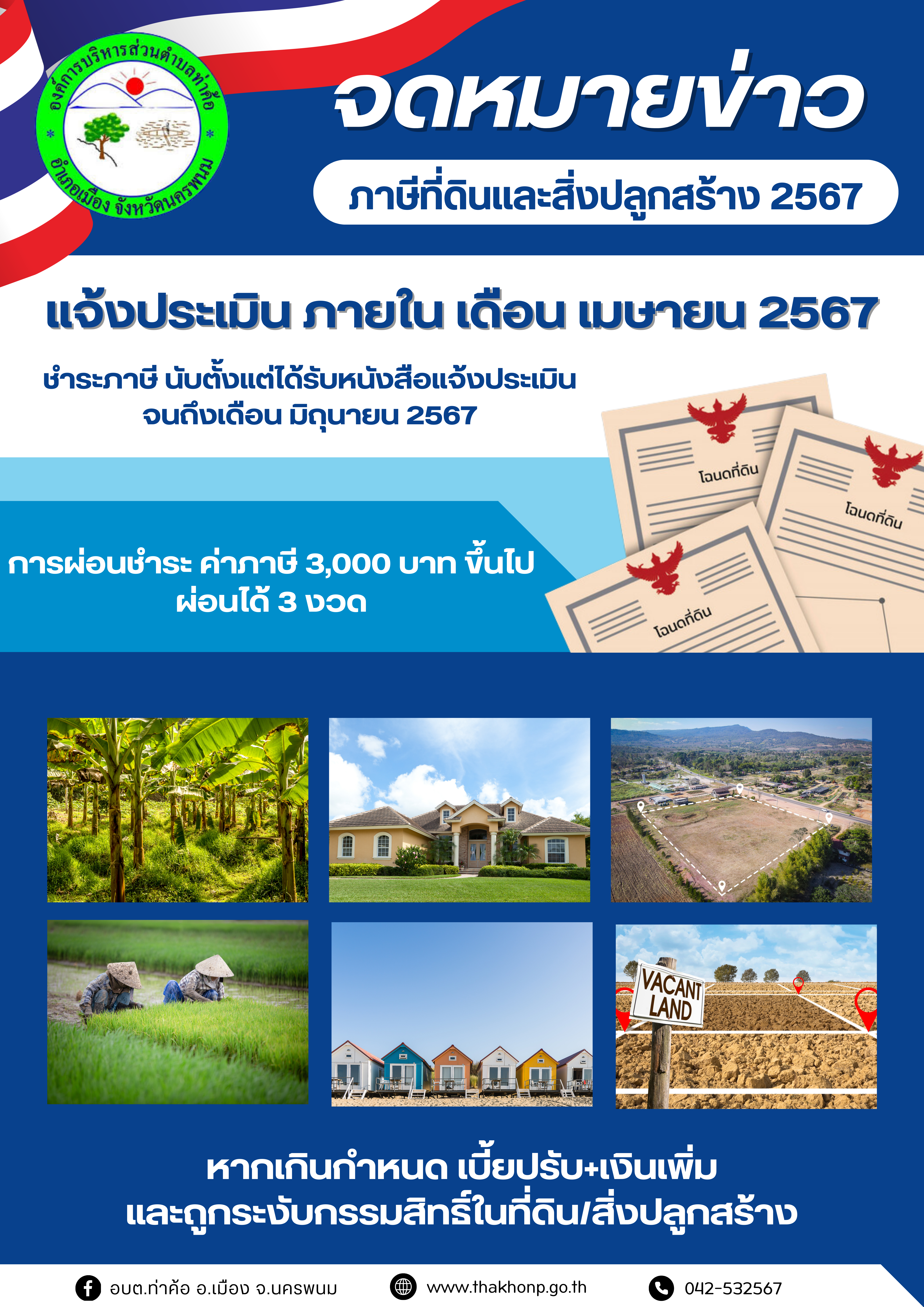 ชื่อเรื่อง : ภาษีที่ดินและสิ่งปลูกสร้าง ปี 2567 ที่ดินแบบไหนต้องเสียภาษี ใครต้องเป็นผู้ที่ต้องเสียภาษีรายละเอียดการเสียภาษี และการคำนวณภาษี นายสุทธิพงษ์ จุลเจริญ ปลัดกระทรวงมหาดไทย เปิดเผยว่า แนวทางการเก็บภาษีที่ดินและสิ่งปลูกสร้างประจำปี 2567 จะใช้อัตราที่จัดเก็บปัจจุบัน ได้แก่ ที่ดินเกษตรกรรมจัดเก็บ 0.01-0.1% ที่ดินเพื่อการอยู่อาศัยจัดเก็บ 0.02-0.1% ที่ดินอื่น ๆ เช่น การพาณิชยกรรม อุตสาหกรรม จัดเก็บ 0.3-0.7% และ ที่ดินหรือสิ่งปลูกสร้างที่ทิ้งว่างเปล่าหรือไม่ได้ทำประโยชน์จัดเก็บ 0.3-0.7%
